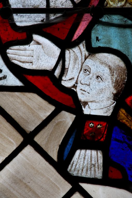 Verrière de la baie 2, lancette droite : buste du donateur (état en 2010)Immatriculation