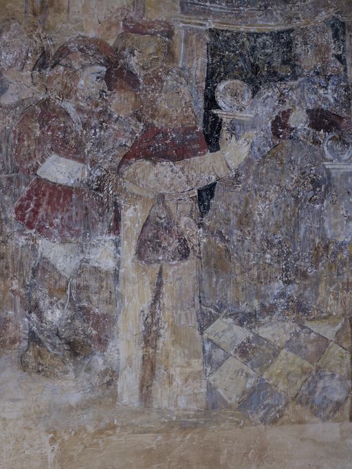 Peinture murale 2 : le pèlerin et son compagnon devant le notable (état en 2010)Immatriculation