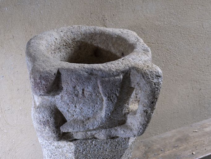 Chapelle : le bénitier (état en 2010)Immatriculation