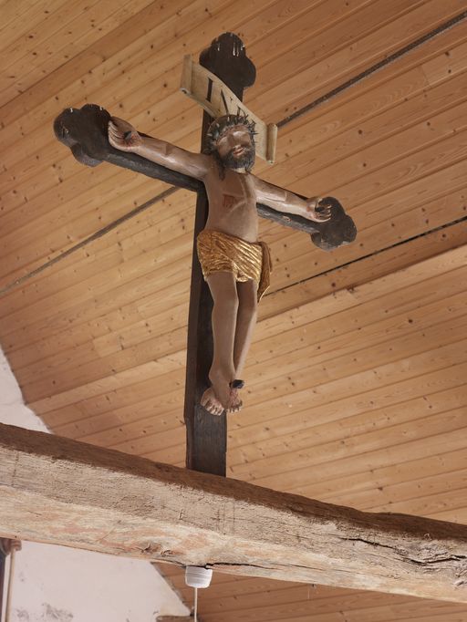 Poutre de gloire : Christ en croix vu de 3/4 (état en 1984)Immatriculation