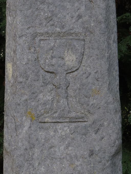 Croix de chemin, décor du fût : calice (état en 2010)Immatriculation