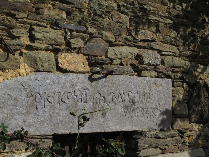 Maison, logis : Inscription sur le linteau de la fenêtre (état en 2010)Immatriculation