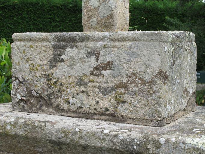 Croix de chemin : la face antérieure du socle (état en 2010)Immatriculation