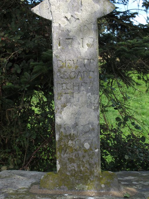 Croix de chemin : inscription sur le fût (état en 2010)Immatriculation