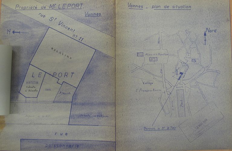 Plan de situation de l'agrandissement par Gemain : état actuel, 1952. AM Vannes 35 W.Immatriculation