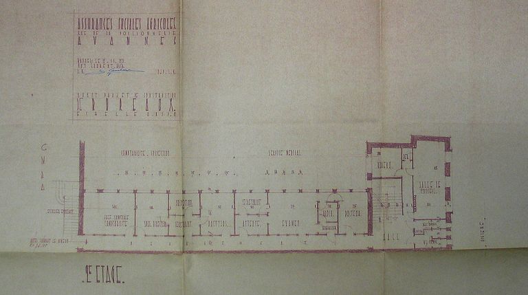 Plan du 2ème étage des bureaux des Assurances sociales agricoles par G. Caubert de Cléry, 1951. AM Vannes.Immatriculation