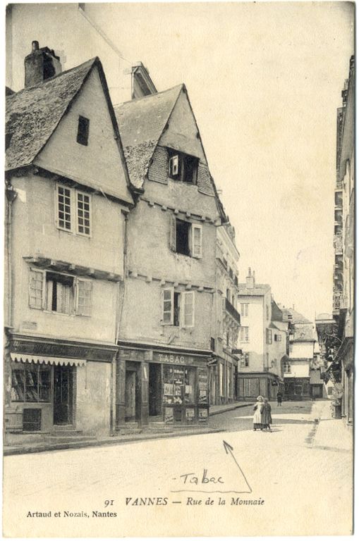 La rue de la Monnaie. Carte postale ancienne. Collection Artaud et Nozais. AM Vannes 7Fi.Immatriculation