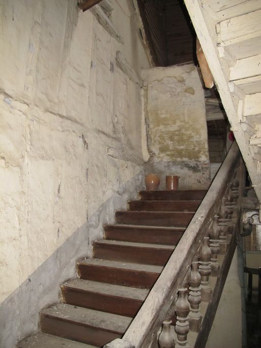 Cage d'escalier, 2ème étage, vue vers l'ouest, mur sud en pan de boisImmatriculation