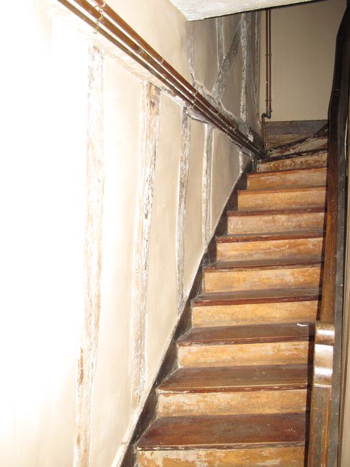 Mur sud de la maison, pan de bois, escalierImmatriculation