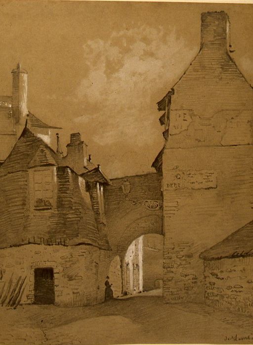 Porte Poterne, vue vers l'est. Dessin par Charles de Lambilly, milieu 19e siècle. Musée des Beaux-Arts, Vannes.Immatriculation