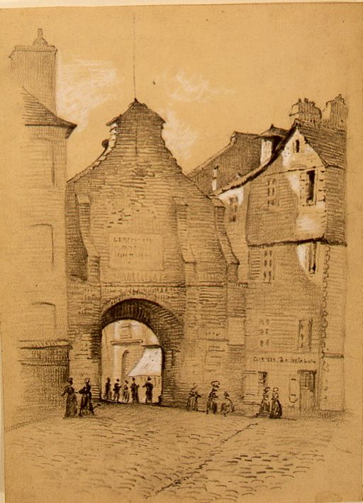 Porte saint-Vincent, vue vers le sud. Dessin par Charles de Lambilly, milieu 19e siècle. Musée des Beaux-Arts, Vannes.Immatriculation