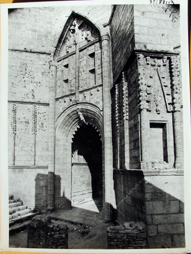 Chapelle devenue église paroissiale. Vue générale du porche sud. Photo Archives photographiques CNMH, reproduction, A.D. Morbihan, 3 Fi 88/13)Immatriculation
