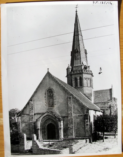 Eglise paroissiale. Vue générale ouest, avant 1940. Photo Archives photographiques CNMH, reproduction, A.D. Morbihan, 3 Fi 135/14)Immatriculation