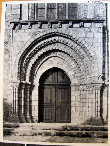 Eglise paroissiale. Portail sud, avant 1940. Photo Archives photographiques CNMH, reproduction, A.D. Morbihan, 3 Fi 135/20)Immatriculation