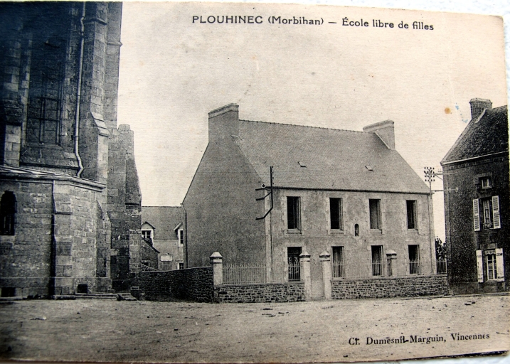 Bourg, école libre de filles avant transformation, vers 1920 ? Carte postale ancienne, Dumesnil-Marguin, Vincennes (AD Morbihan 9 Fi)Immatriculation