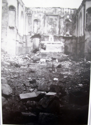 Vue intérieure. Photographie vers 1945, après destruction (AC Sainte-Hélène)Immatriculation