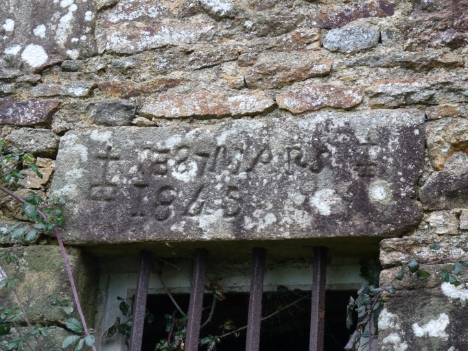 Elévation sud, partie ouest, détail du linteau de la fenêtre de la salle daté 1845Immatriculation