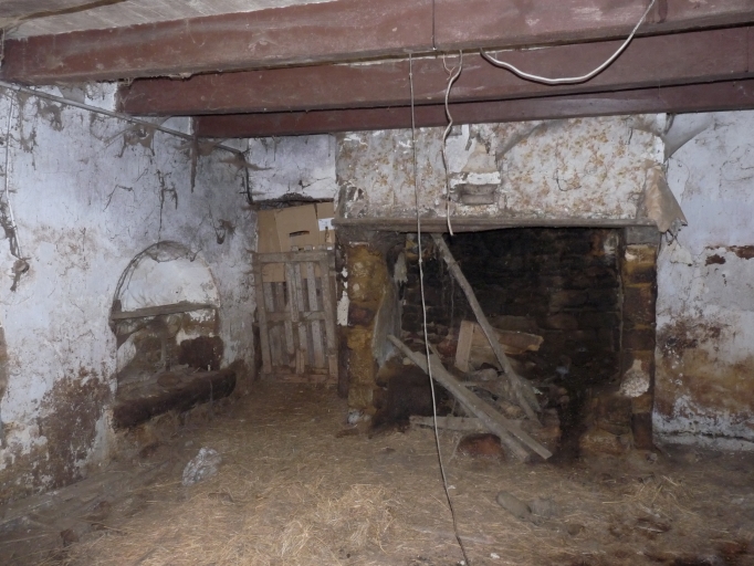 Corps principal, vue intérieure vers l'ouest : cheminée, placard et évier mural.Immatriculation