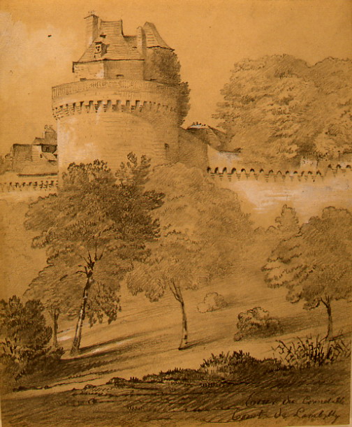 La tour du Connétable depuis les jardins de la Garenne, milieu 19e siècle. Musée des Beaux-Arts, Vannes.Immatriculation