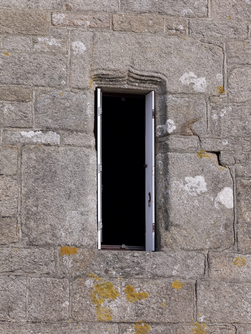 Loguivy-Plougras, La Grande Salle : manoir, vue de détail de la fenêtre à l'étage (petite baie à traverse)Immatriculation