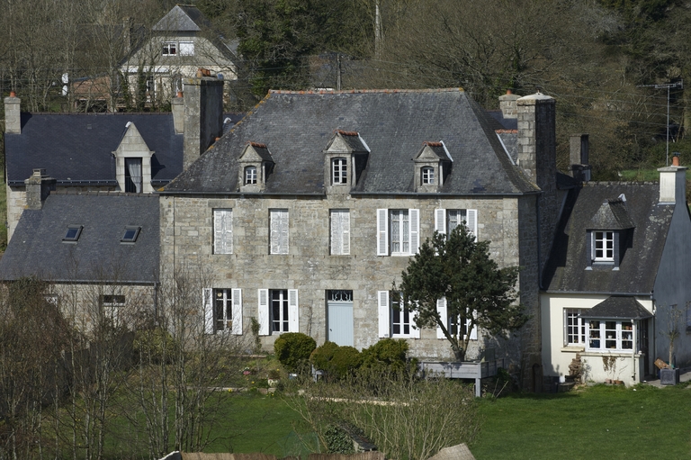 Loguivy-Plougras, église paroissiale Saint-Emilion : vue du bourg depuis le clocherImmatriculation