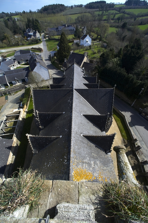 Loguivy-Plougras, le bourg : église paroissiale Saint-Emilion, vue de la toiture de la nefImmatriculation