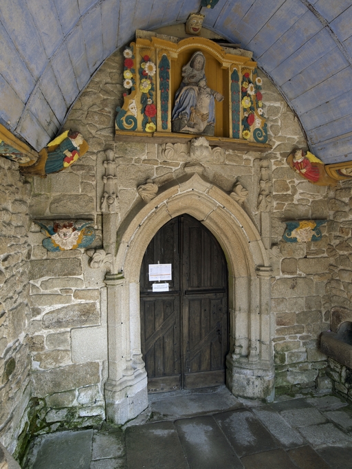 Plougras, le bourg : église paroissiale Saint-Pierre, vue du porche sudImmatriculation