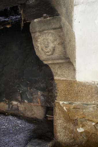 Partie est de l'alignement, vue intérieure, cheminée de la salle est, console sculptée, figure joyeuseImmatriculation