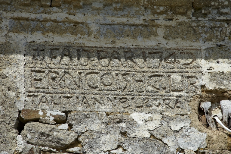 Inscription : (Croix) FAIT PAR 1742 FRANCOIS HEURTAUT IANNE LEGRANImmatriculation