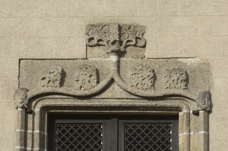 Logis, façade antérieure, porte, détail : décor d'accolade fleuronnéeImmatriculation