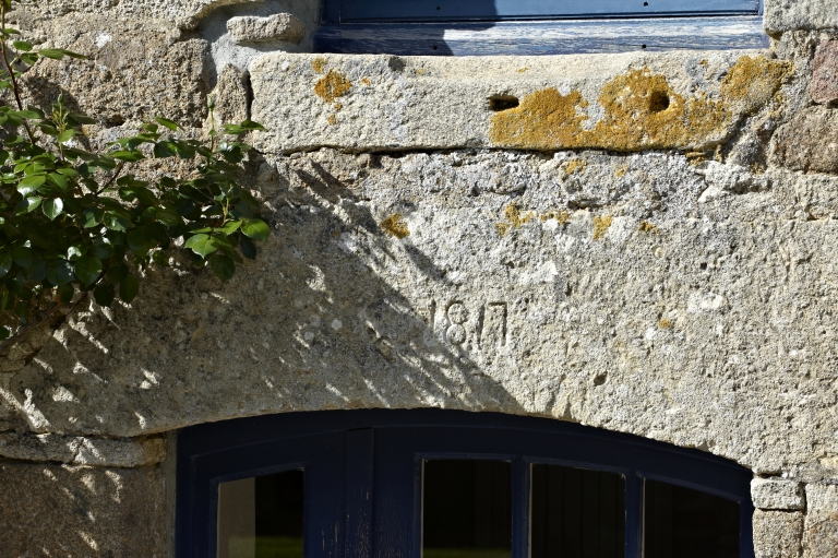Porte, détail, linteau en arc segmentaire portant la date de 1817Immatriculation