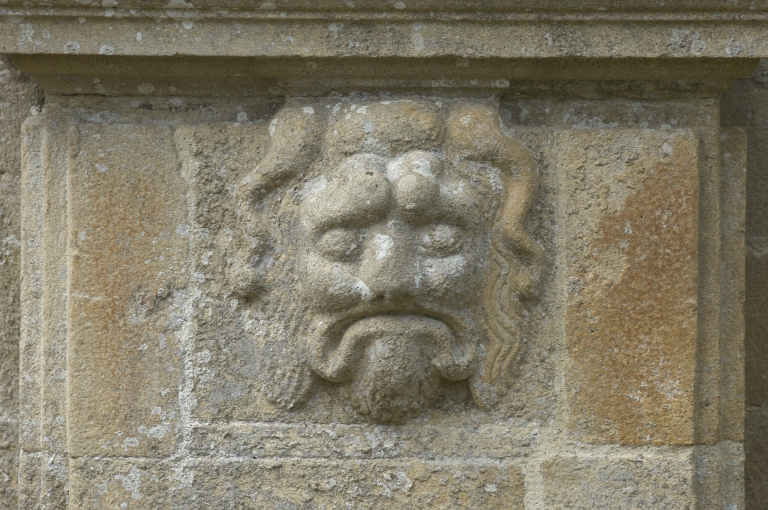 Portail, du corps de passage, détail : masqueImmatriculation