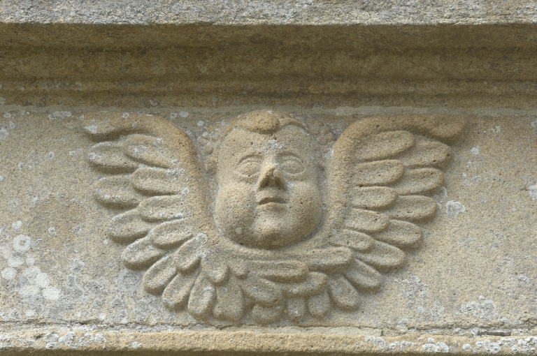 Portail, du corps de passage, détail, tête d'angeImmatriculation