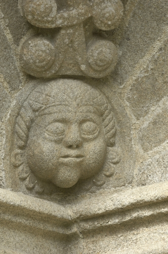 Pavillon d'angle, détail, décor sculpté sur trompeImmatriculation