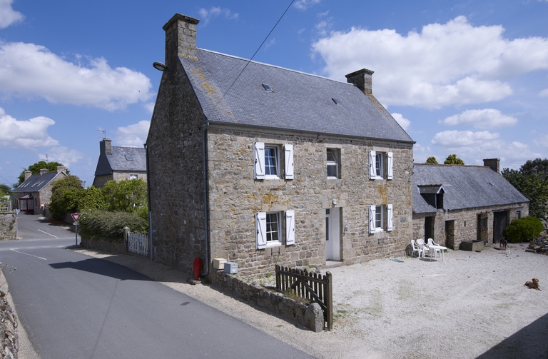 Pluzunet, le bourg, 3 rue Jeanne-Marie Guerguin : ferme, élévation antérieure orientée vers le sud. Le logis est datable du 2e quart du 19e siècleImmatriculation