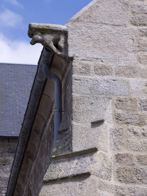 Pluzunet, le bourg, place Marc'harit Fulup : église paroissiale Saint-Pierre, décor du rampant ouestImmatriculation