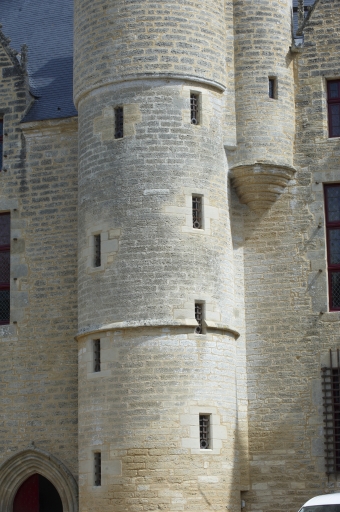 Façade antérieure, tour d'escalier centrale, détail de la mise en oeuvreImmatriculation