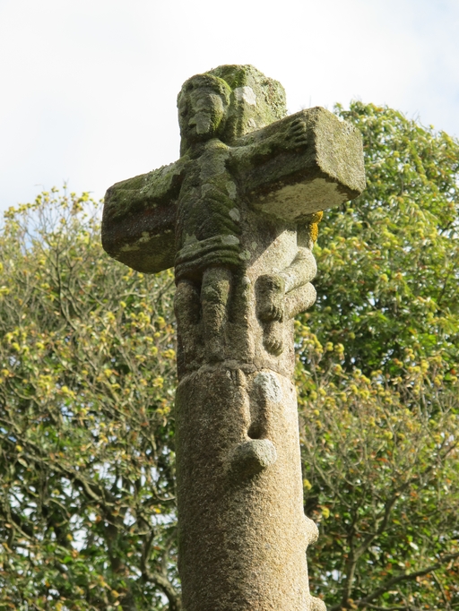 Le Vieux-Marché, la Trinité : croix de la chapelle de la Trinité, avers, représentation très frustre d´un Christ à perizonium très court et couronne largeImmatriculation