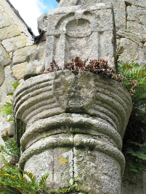 Le Vieux-Marché, La Trinité : chapelle, vue est, chevet à noues multiples, détail d'un des contreforts circulaires à socle carréImmatriculation