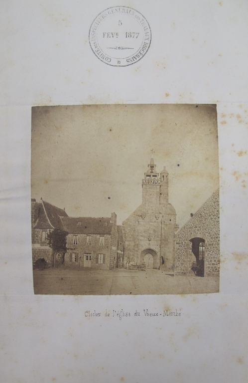Le Vieux-Marché, le bourg, place Angela Duval : ancienne chapelle trèviale, élévation ouest, photographie du 5 février 1877, comité des inspecteurs généraux des travaux diocésains, Archives départementales des Côtes-d'ArmorImmatriculation