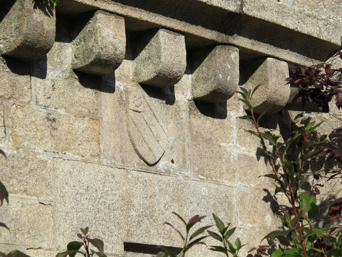 Le Vieux-Marché, le bourg, place Angela Duval : église paroissiale Notre-Dame-de-Consolation, détail d'armoiriesImmatriculation