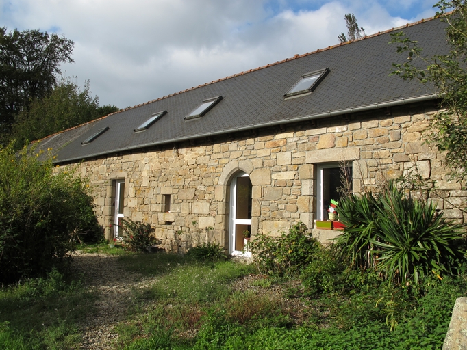 Le Vieux-Marché, Guernaham : Le Vieux-Marché, Guernaham : métairie se prolongeant par une grange-remise à colonne (remaniement de la maçonnerie visible dans l'appareillage)Immatriculation