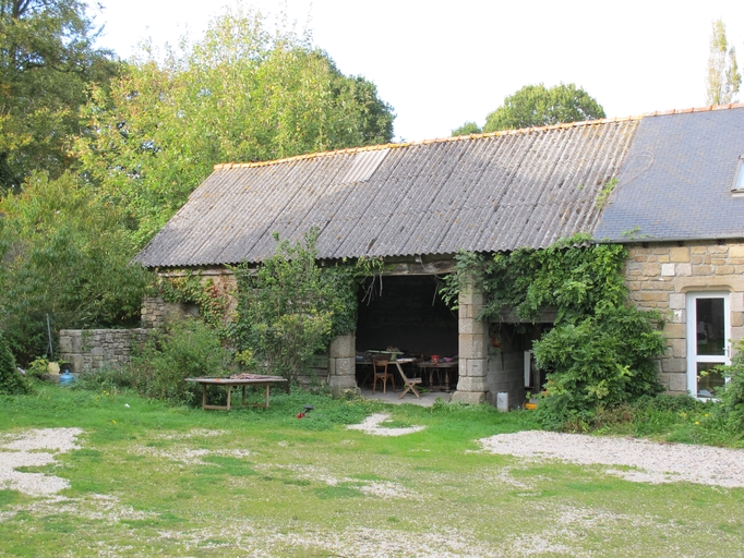 Le Vieux-Marché, Guernaham : grange-remise à deux piliers en pierre de taille de granite (plan octogonal)Immatriculation