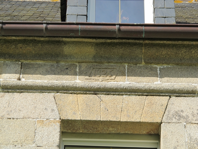 Le Vieux-Marché, Keramborn : logis de ferme, date de construction portée au-dessus de la fenêtre centrale de l'étage, "1826"Immatriculation