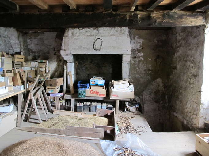 Le Vieux-Marché, Kerdoualen : ferme, vue intérieure, étage, cheminée sur le mur est. L'étage sert aujourd'hui au stockage de grainImmatriculation