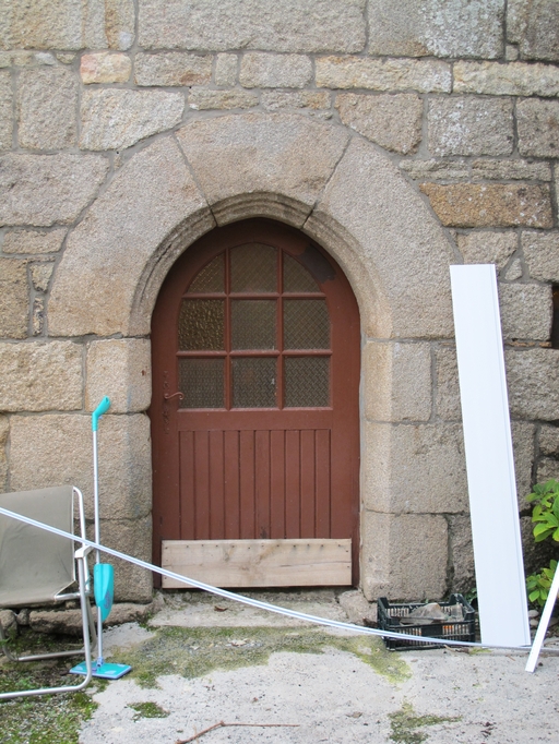 Le Vieux-Marché, Launay : manoir ( ?), façade sud, porte en arc brisée, chanfrein et mouluresImmatriculation