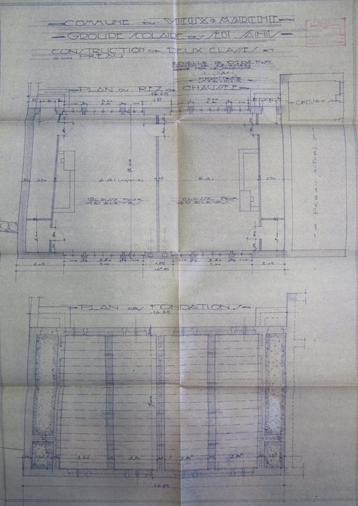 Le Vieux-Marché, les Sept Saints : école (groupe scolaire des Sept Saints), construction de deux classes et d'un préau, octobre 1936Immatriculation