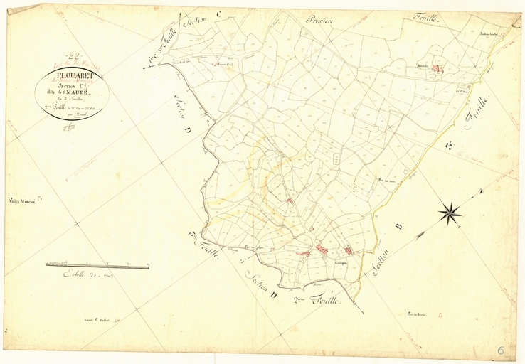 Feuille C2 du cadastre ancien de la commune de Le Vieux-Marché, 1835Immatriculation