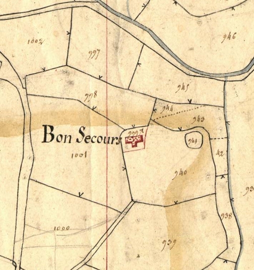 Extrait de la feuille D3 du cadastre ancien de la commune de Le Vieux-Marché, 1835 : chapelle Notre-Dame-de-Bon-SecoursImmatriculation