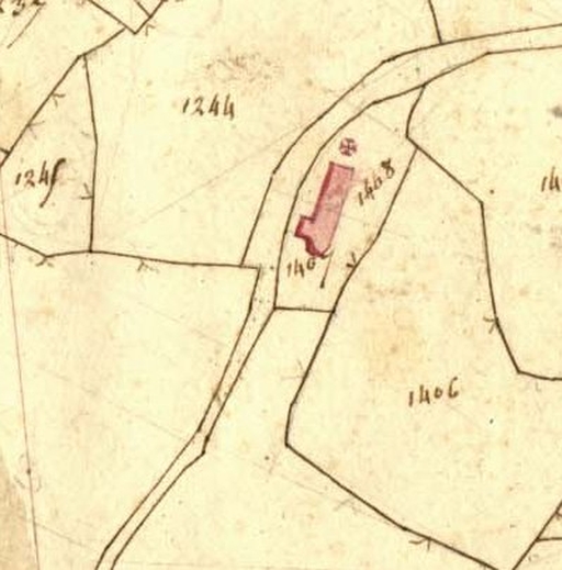 Extrait de la feuille E3 du cadastre ancien de la commune de Le Vieux-Marché, 1835 : chapelle et croix de La TrinitéImmatriculation